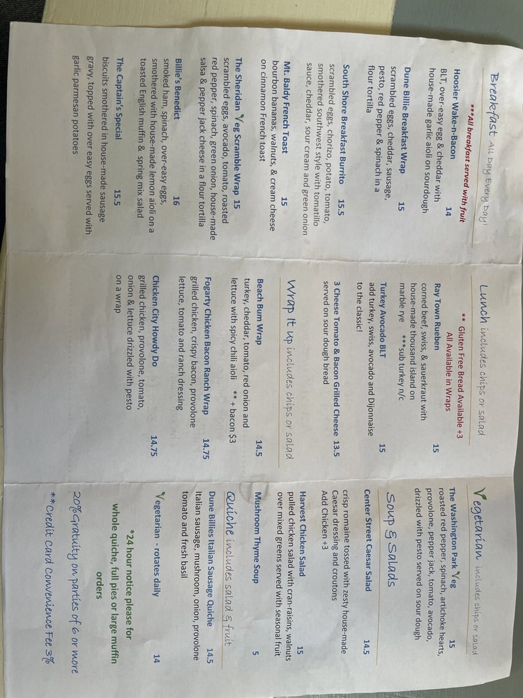 “ Everything about this place is fabulous! I had the Dune Billie breakfast wrap my friend had the quiche and one had the blueberry crumble pie. DELICIOUS! I bought cinnamon rolls to have for the next morning. Such a gem of a place. The staff is super friendly-great service! We'll be back! ”